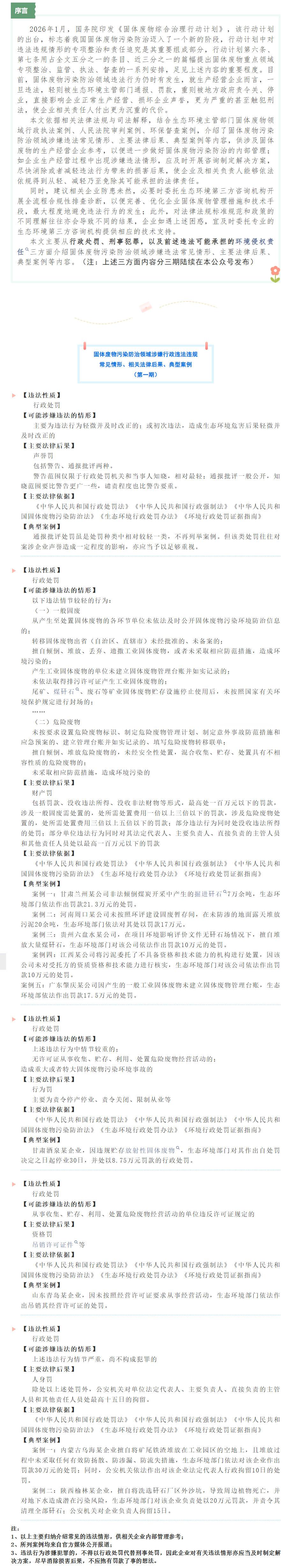 固体废物污染防治领域涉嫌违法常见情形及法律后果(第一期)